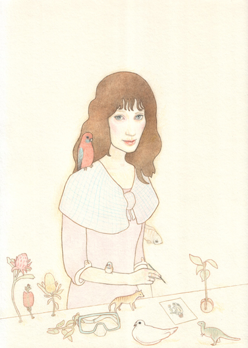 Jeannie Baker, 2013, Colour Pencil on paper, 400 x 600 mm. Archibald Entry.Square Window, 2004, Colour Pencil on paper, 210 x 290 mm.Left to m Devices, 2013, Colour Pencil on paper, 340 x 390 mm.Hier and There, 2011, Colour Pencil on paper, 210 x 290 mm.Cuscus, 2006, Colour Pencil on paper, 210 x 290 mm.